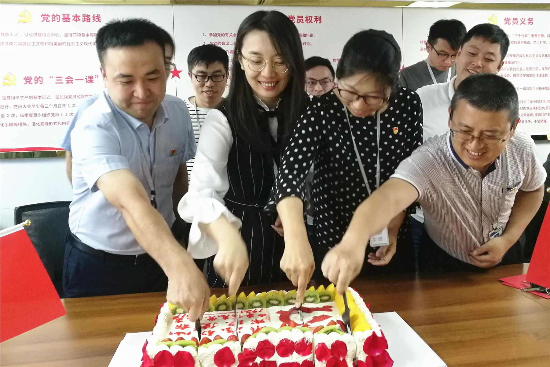 活动最后,大家共同分享政治生日蛋糕,集体度过有意义的政治生日。北京公司、南京公司党支部分别组织了活动。