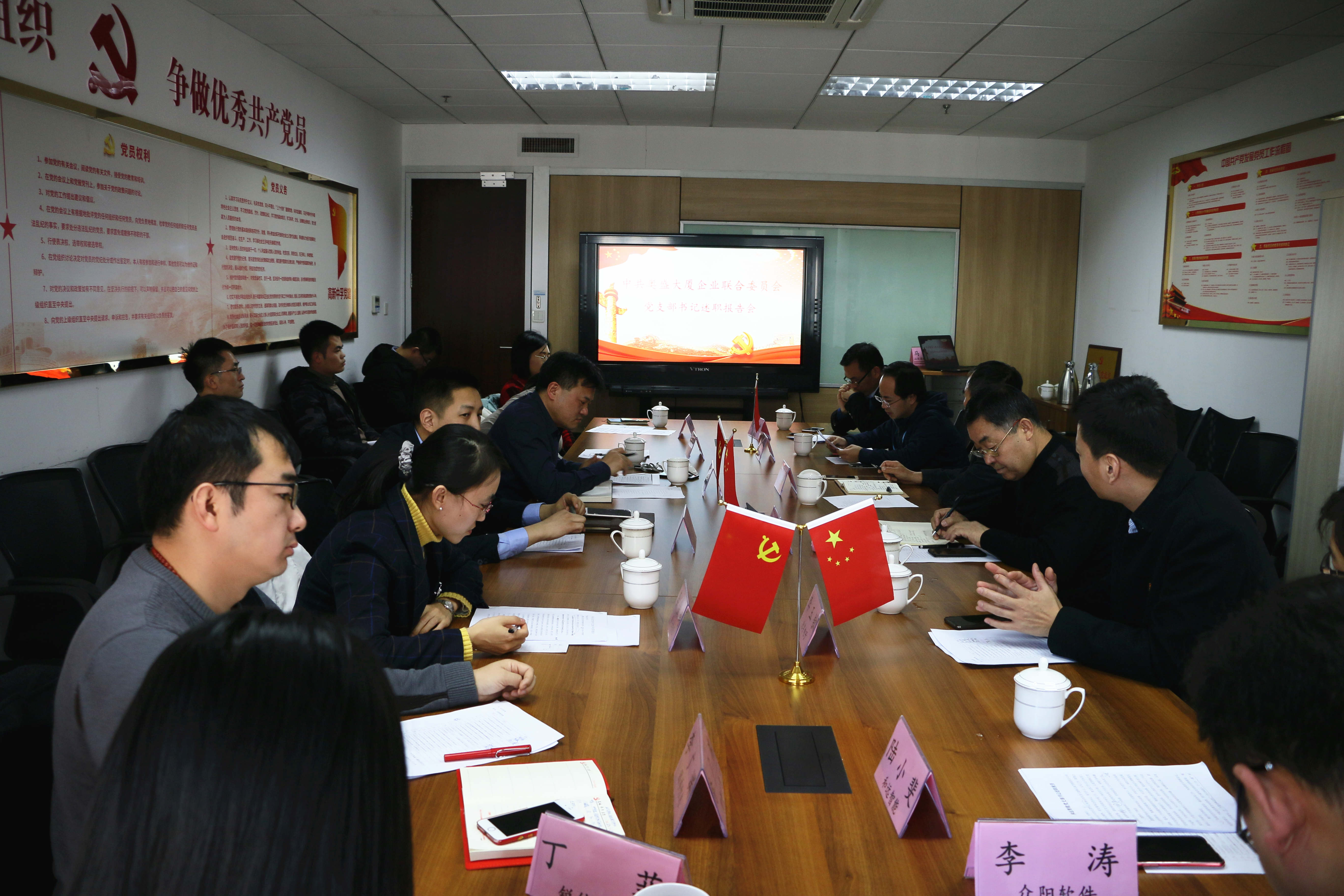 2019年1月17日,中共奥盛大厦综合委员会2018年度党支部书记述职报告会在银河集团(galaxy)15层党建活动室举行。济南高新区党建指导员徐庆海、吴长利应邀出席会议,联合委员会所辖19个党支部书记依次做述职汇报,银河集团(galaxy)党总支书记张太祥做报告。